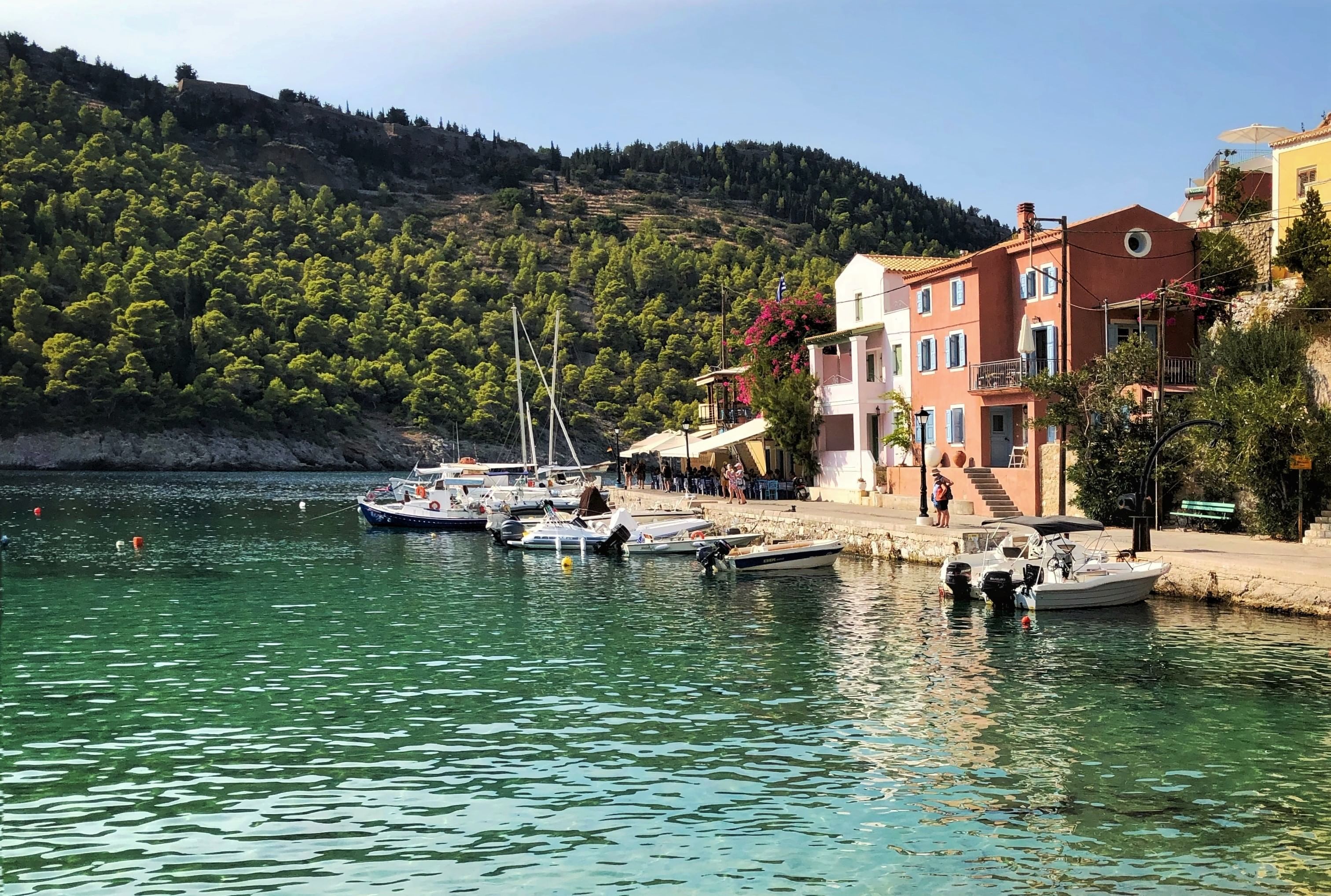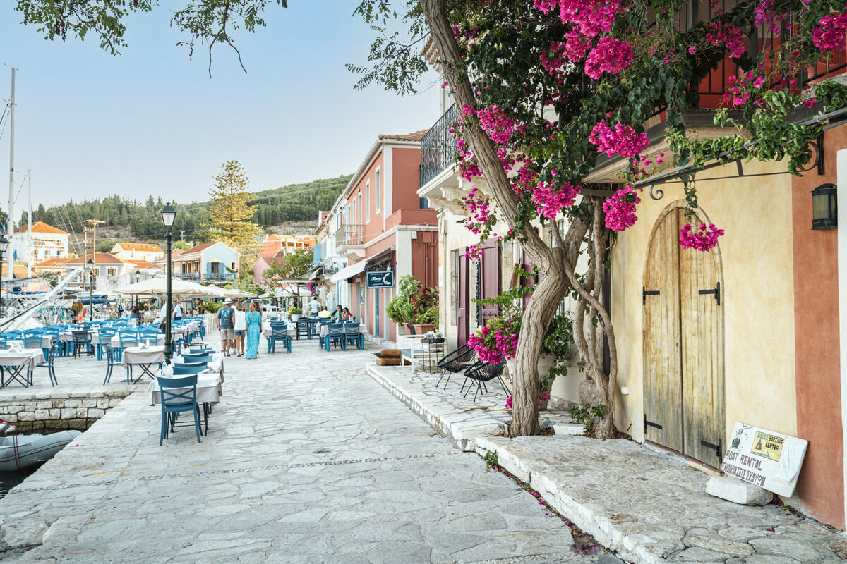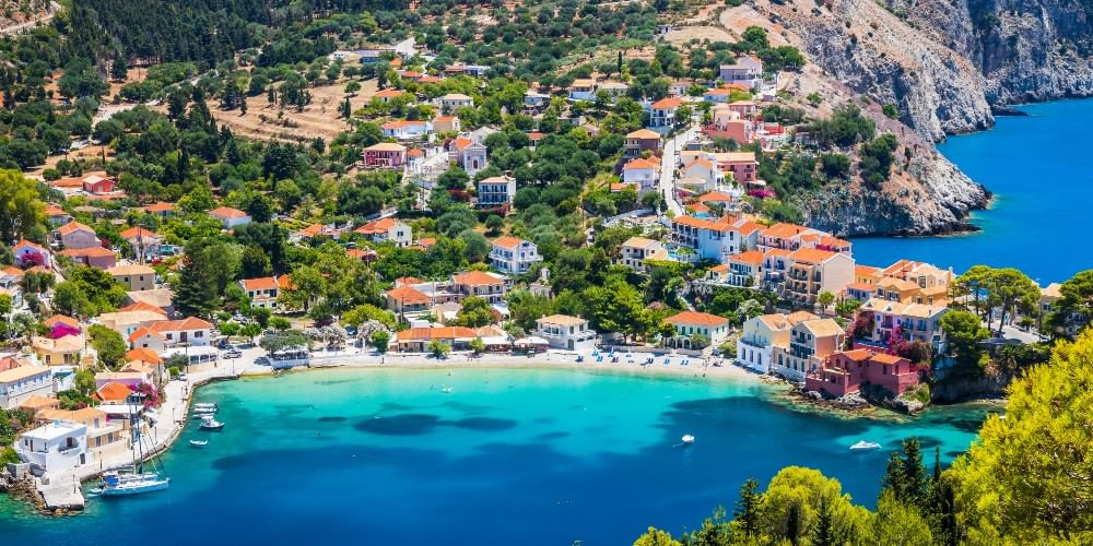 Next, continue to the enchanting village of Assos, a colorful gem perched on a narrow peninsula. Surrounded by pine trees and tranquil blue waters, Assos is a peaceful escape known for its Venetian architecture, charming alleys, and vibrant bougainvillea. Take a leisurely walk through the village or hike up to the impressive 16th-century Venetian Castle, which offers panoramic views and a glimpse into the island’s historic past.