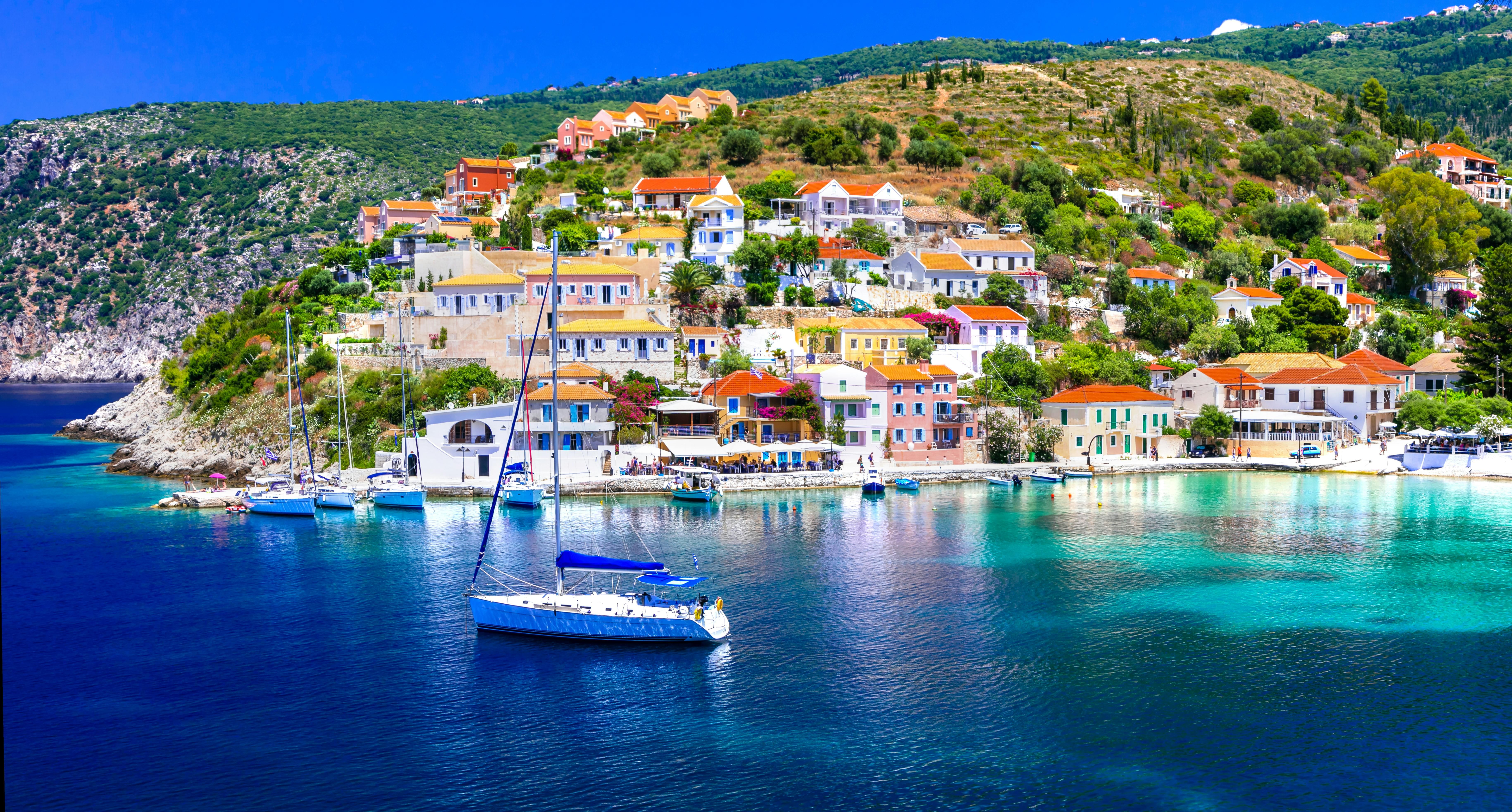 The final stop brings you to the elegant harbor village of Fiscardo, located on the northernmost tip of the island. Fiscardo, one of the few villages that survived the 1953 earthquake intact, remains a beautifully preserved example of Kefalonia’s Venetian legacy. With its pastel-colored buildings, upscale shops, seaside tavernas, and luxury yachts bobbing in the marina, it’s no wonder this cosmopolitan village is a favorite among celebrities and travelers alike.