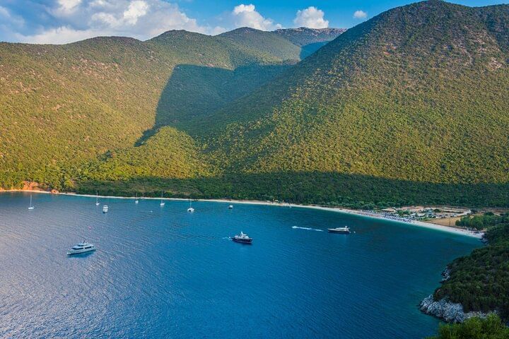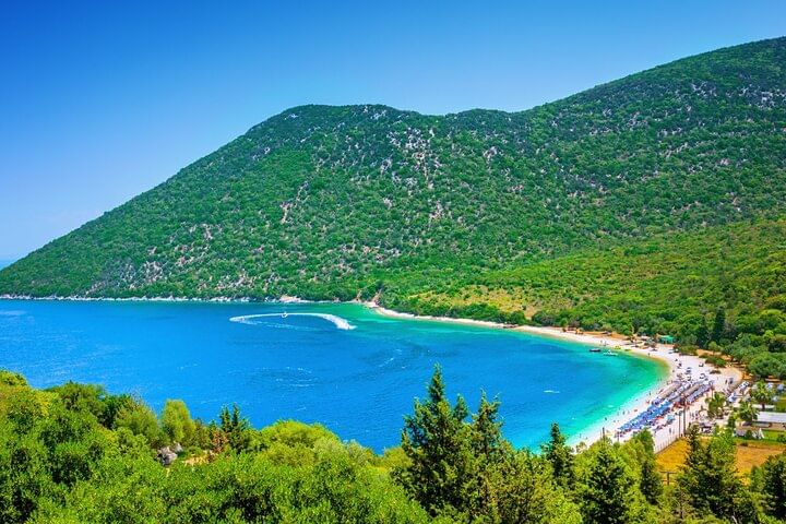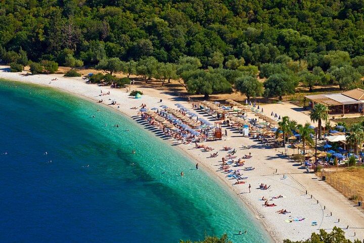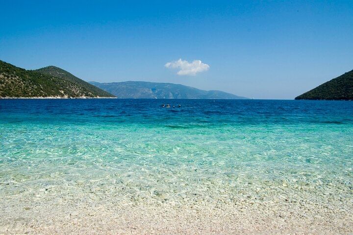 To complete this unforgettable adventure, unwind at the breathtaking Antisamos Beach, one of Kefalonia’s most iconic coastal treasures. As you approach, the intense green of the lush surrounding hills gives way to the shimmering deep blue of the Ionian Sea, offering a dazzling palette of natural color. This beach, featured in the Hollywood film Captain Corelli’s Mandolin, is a perfect haven for a refreshing swim or a lazy afternoon under the Greek sun. Don’t forget to pause at the viewpoint above for panoramic photos that capture the true essence of the island’s beauty.