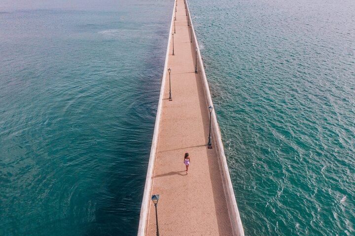 As the tour unfolds, you'll arrive at the legendary De Bosset Bridge—the world’s longest stone bridge built over seawater. Standing since 1813, it offers not only remarkable engineering but also picturesque views of the bay and a chance to spot the island’s beloved Caretta caretta sea turtles swimming below.